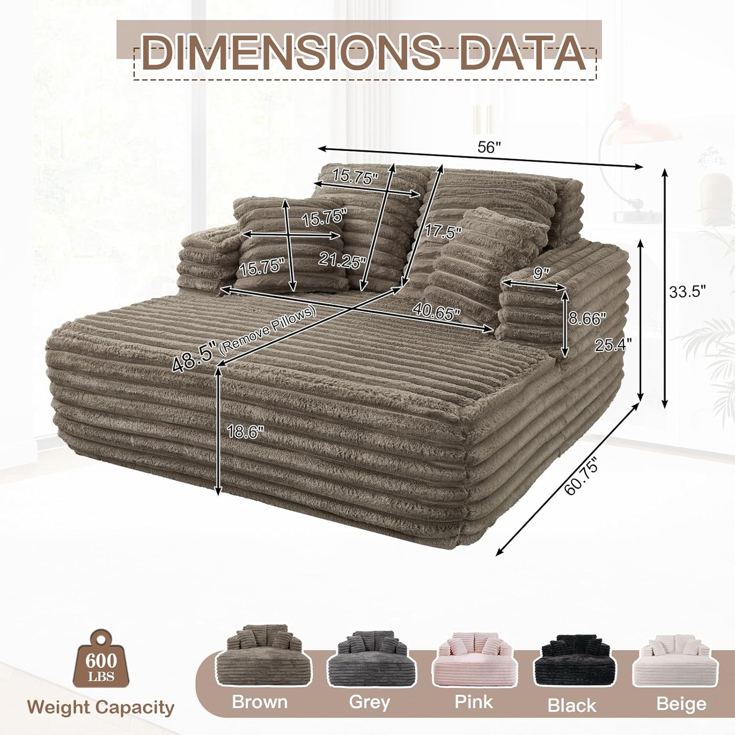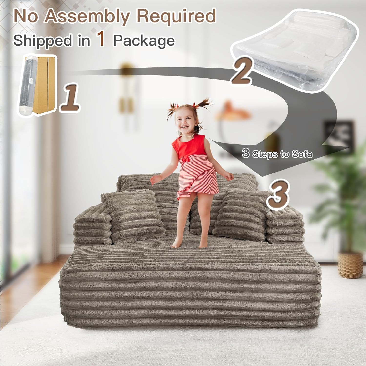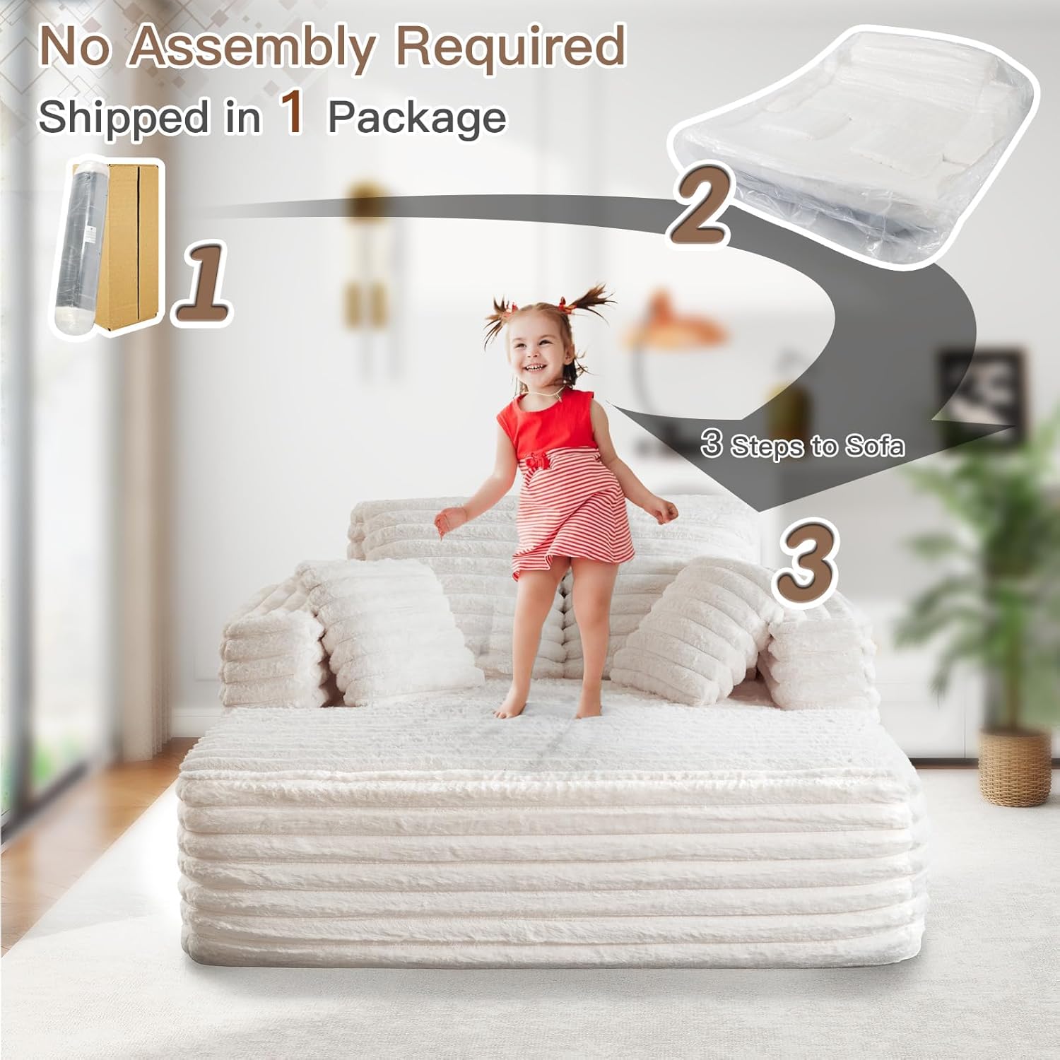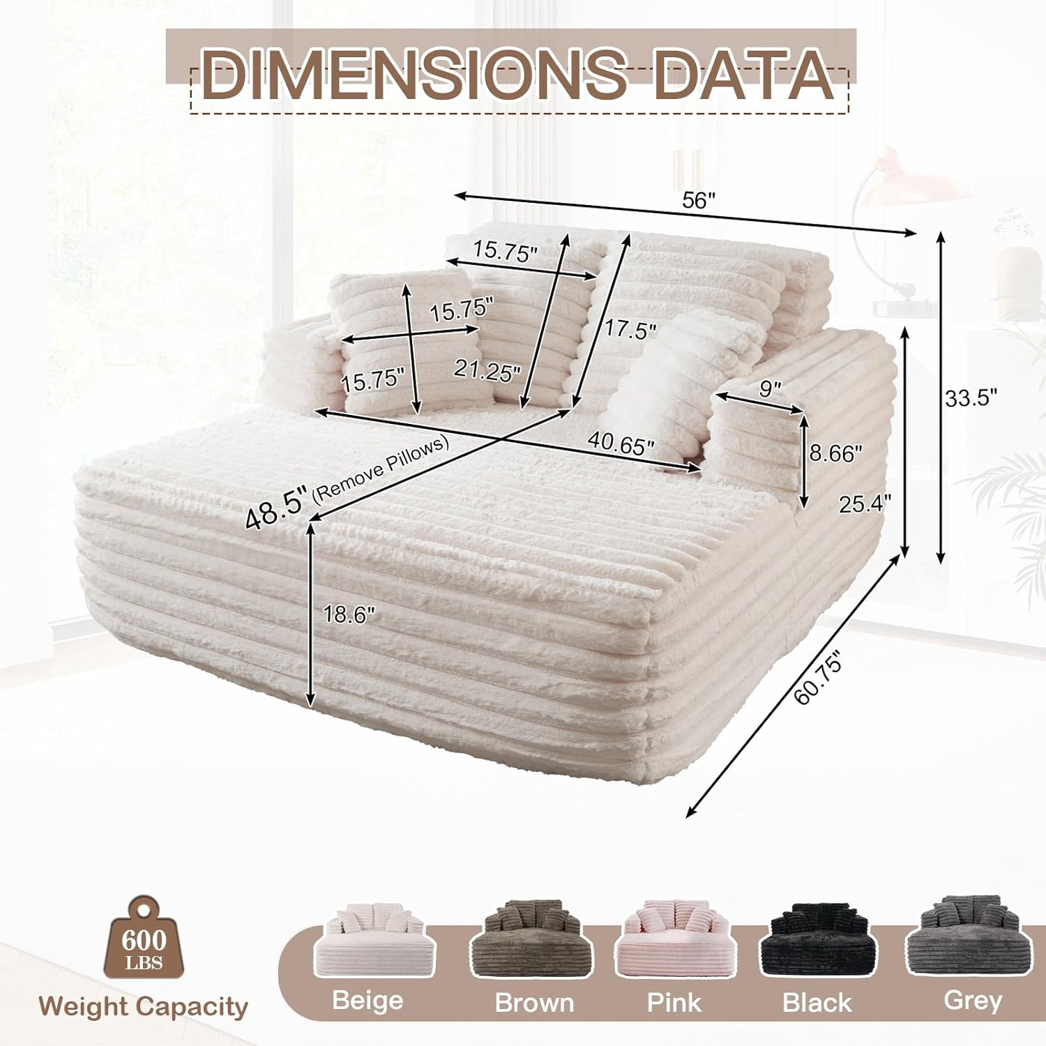 - No Assembly Required: Overall size: 60.75'' x 56'' x 33.5'' (D x W x H). Load capacity: 600 LBS. Our fluffy couch comes in a convenient compression package, allowing you to enjoy it without any installation hassles. Just tap the sofa gently after unboxing, and it will return to its original shape within 24-72 hours