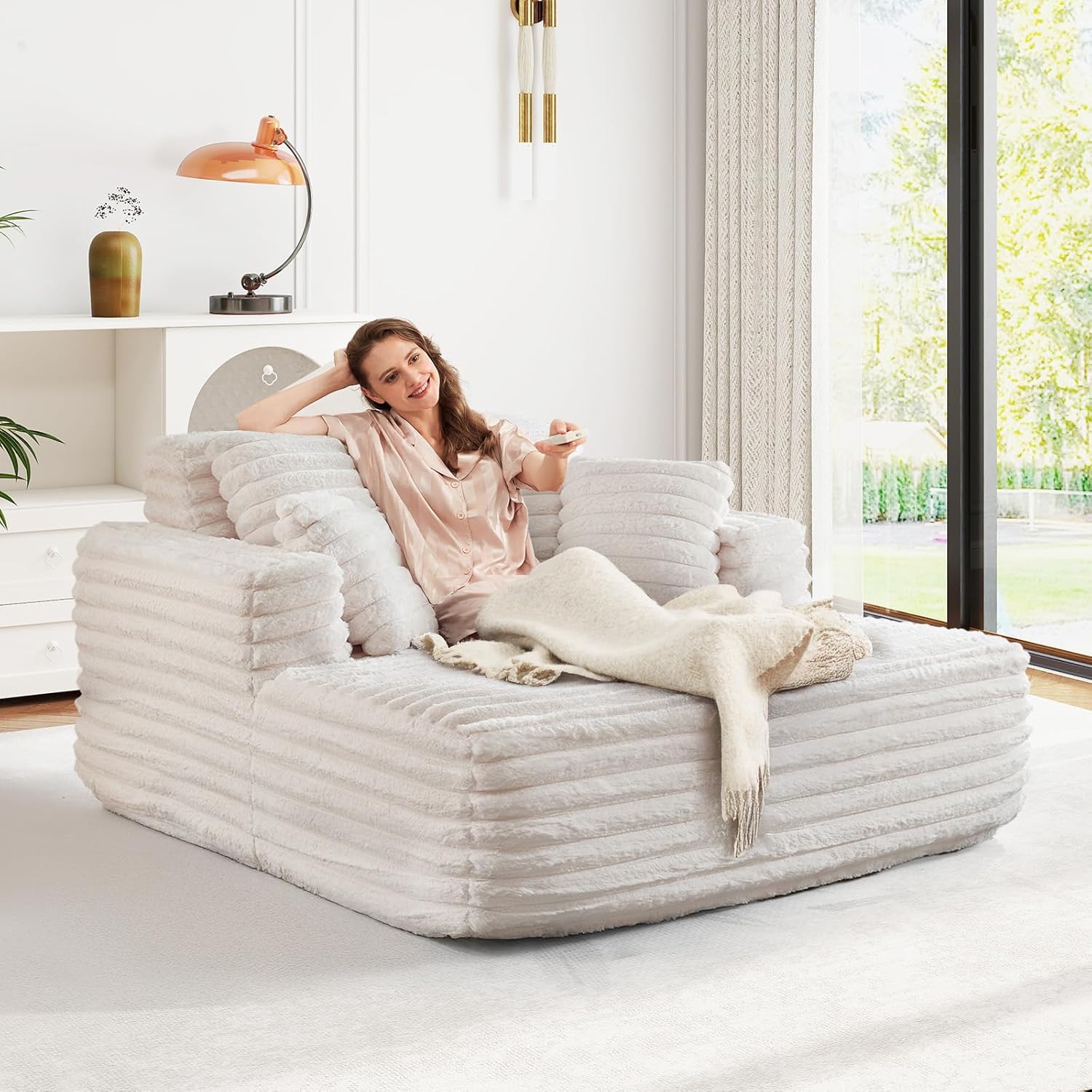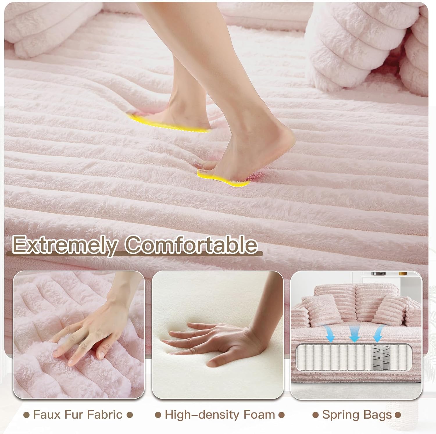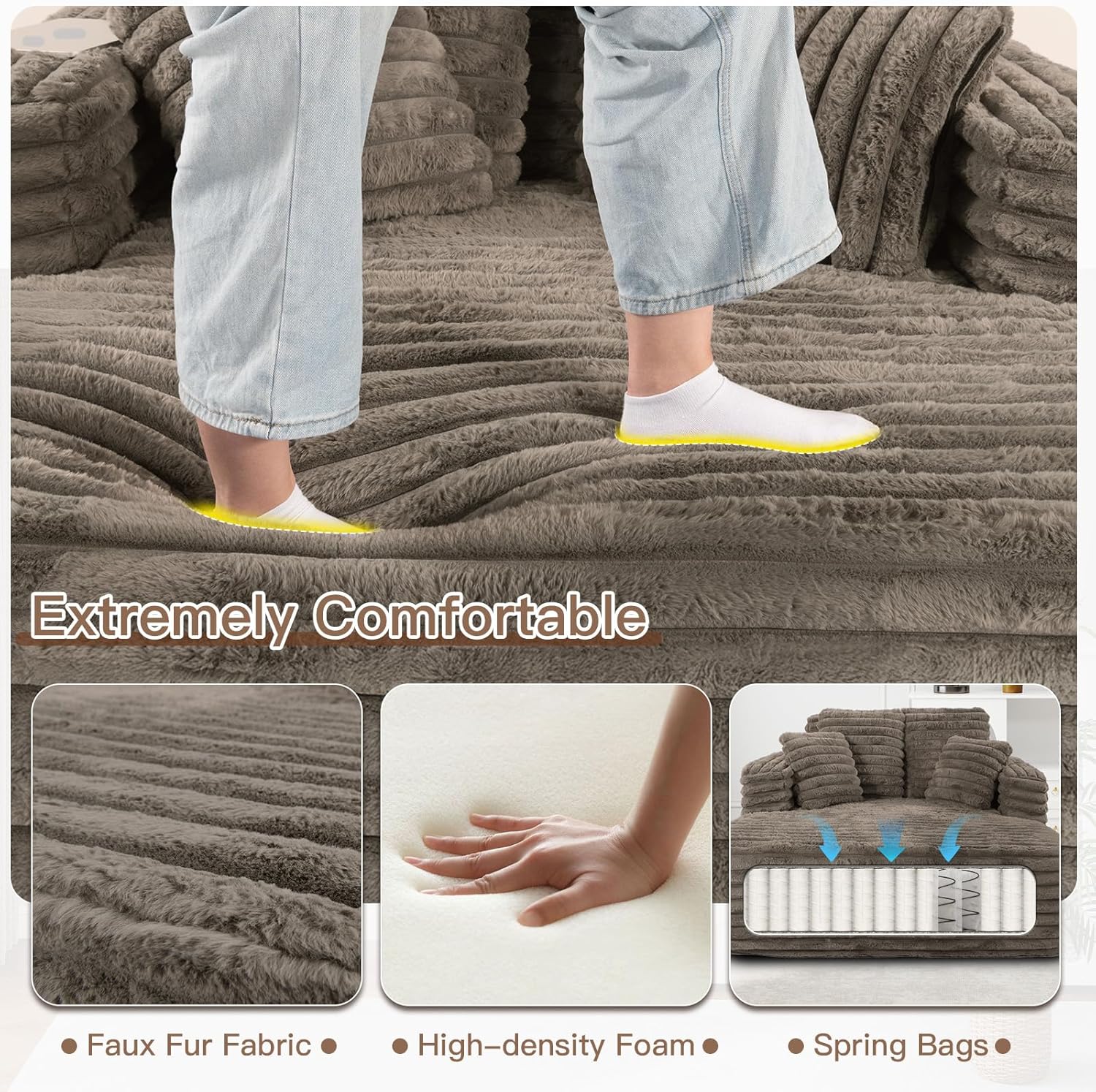 - Fluffy Lounge Sofa: The chaise lounge chair indoor is wrapped in soft and skin-friendly faux fur fabric, showing an attractive striped texture, which looks sophisticated and luxurious. This cloud couch is designed to provide a comfortable and relaxing seating experience. You can sink into its comfort and relax after a long day. Our oversized couch is the perfect choice to enhance the comfort and beauty of your living area