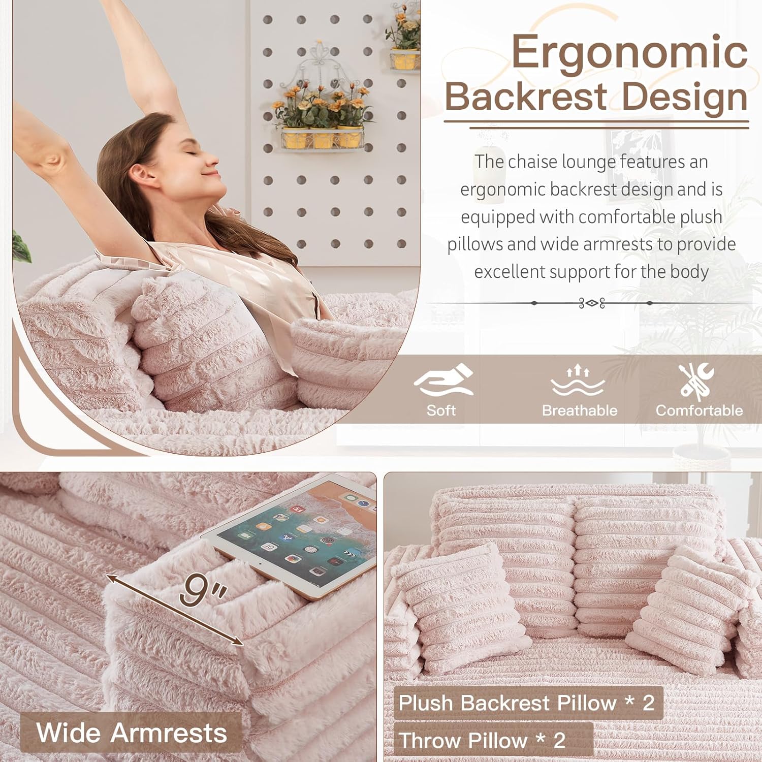 - Comfortable Ergonomic Design: This oversized chaise is ergonomically designed. The comfortable backrest, backrest pillow, and toss pillow provide excellent back and lumbar support for the body, combining comfort with functionality. The 9-inch wide armrests provide you with loose and leisurely arm support