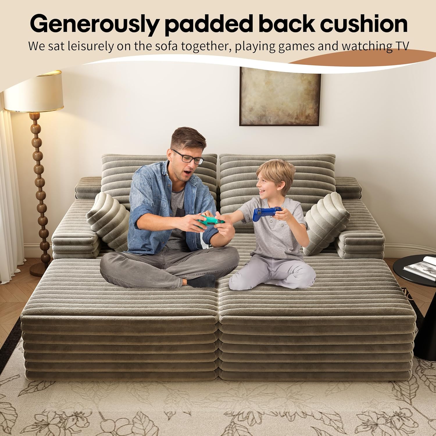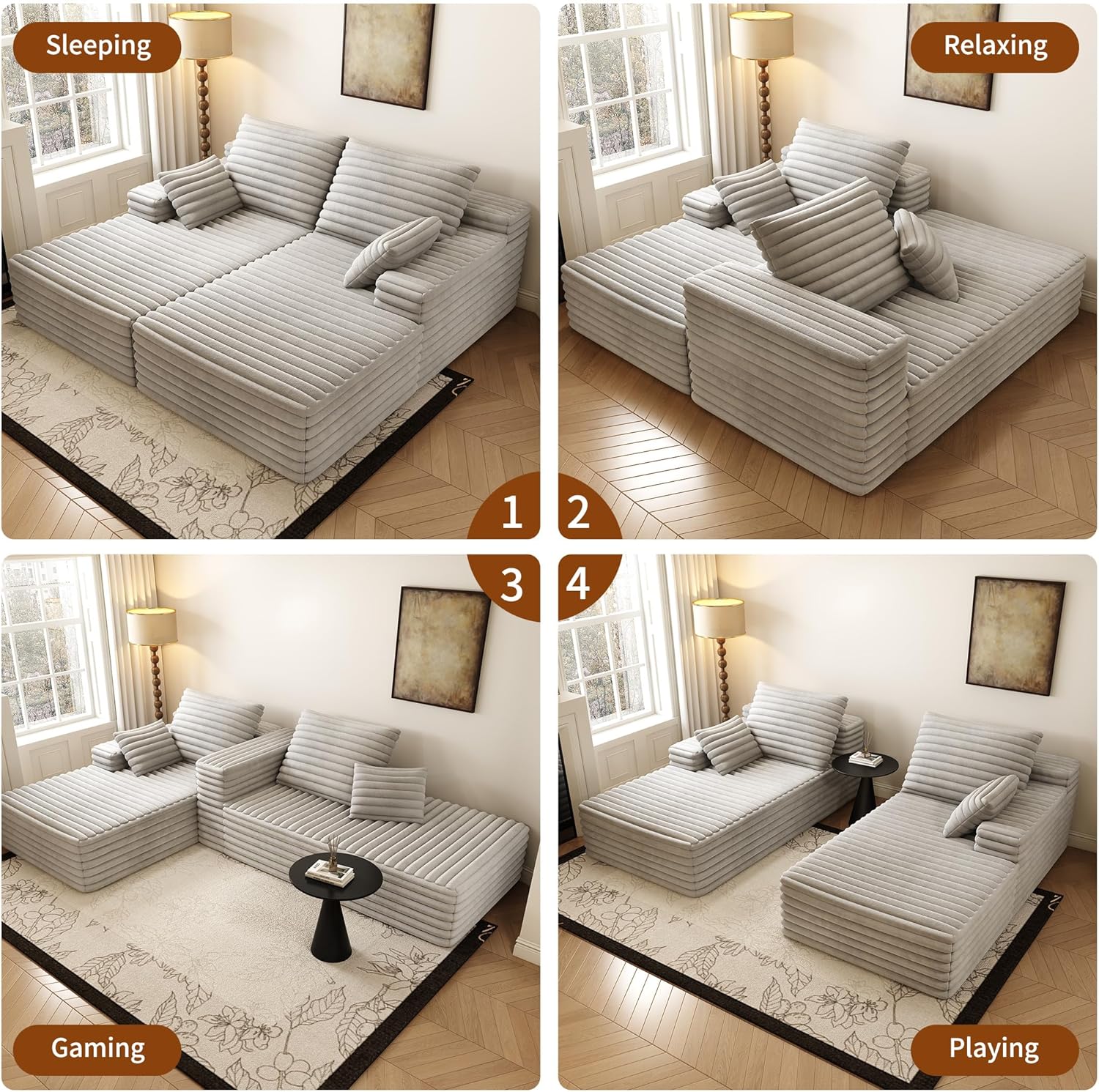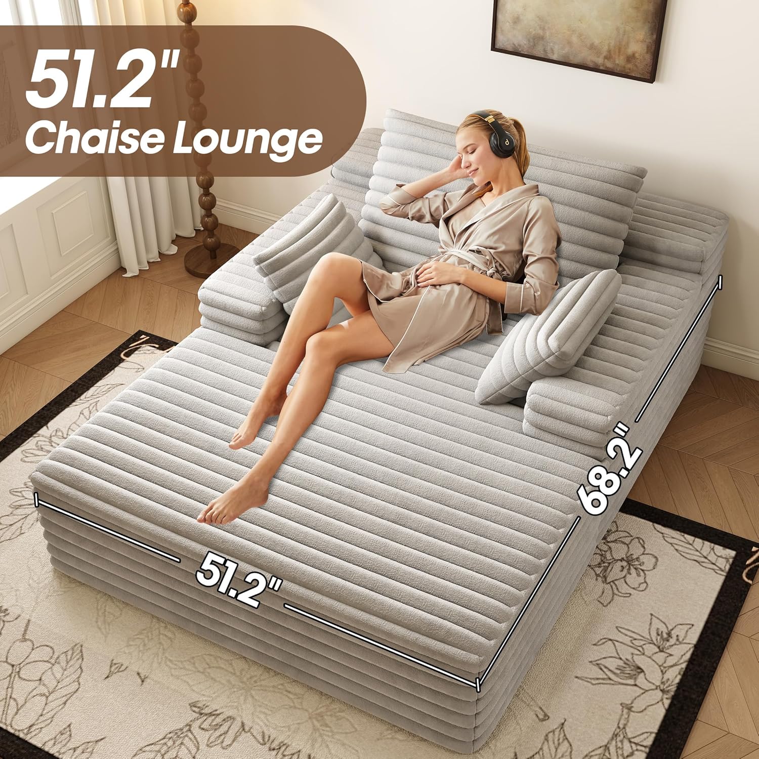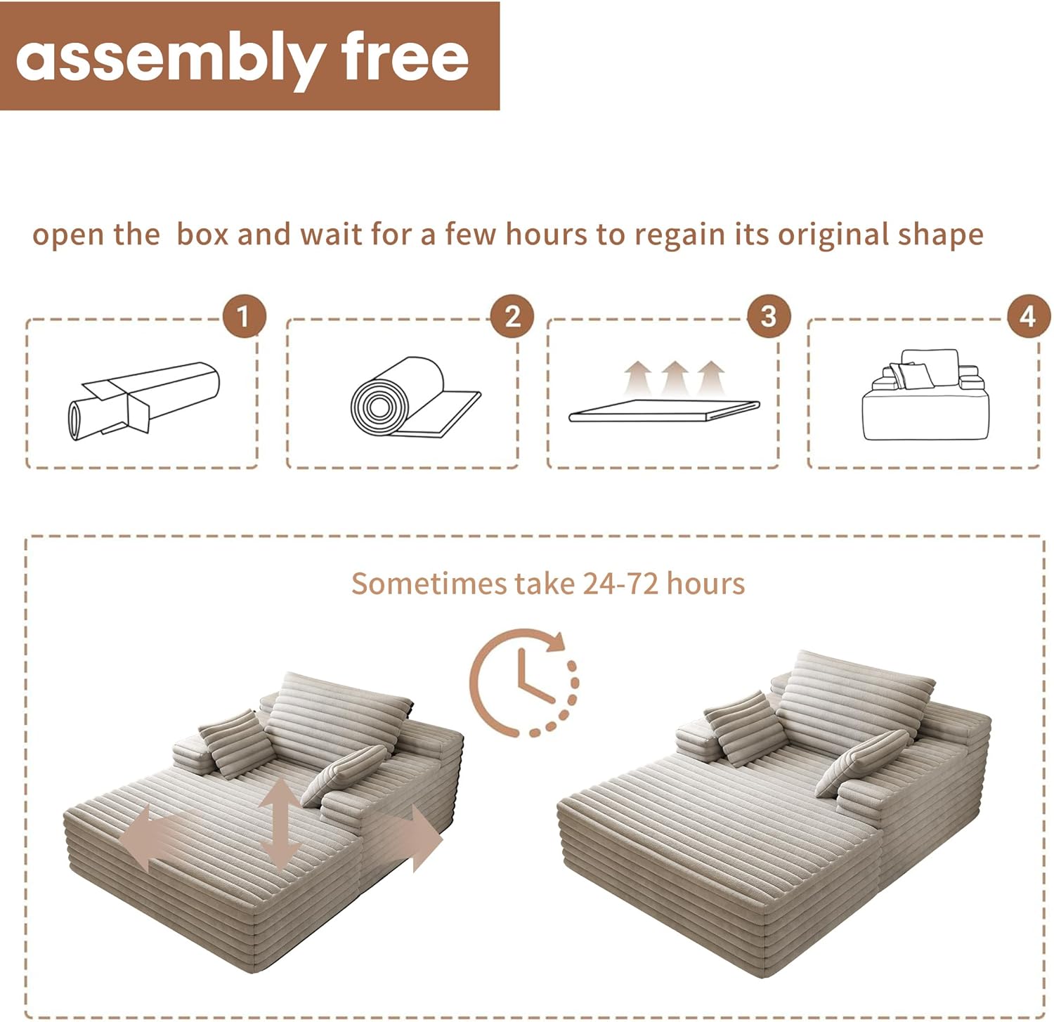 - No Assembly Required: Get rid of the hassle of typical furniture installation with our chaise lounge chair. Our giant sofa couch with cushions and pillows is packed in vacuum compression. Please leave it alone for 24-72 hours after receiving and opening so that the sponge can fully expand.Simply disassemble all parts and gently tap each section to restore its elasticity and fluffiness