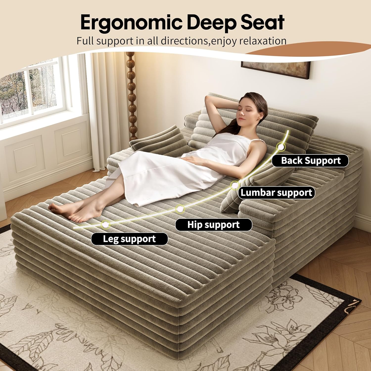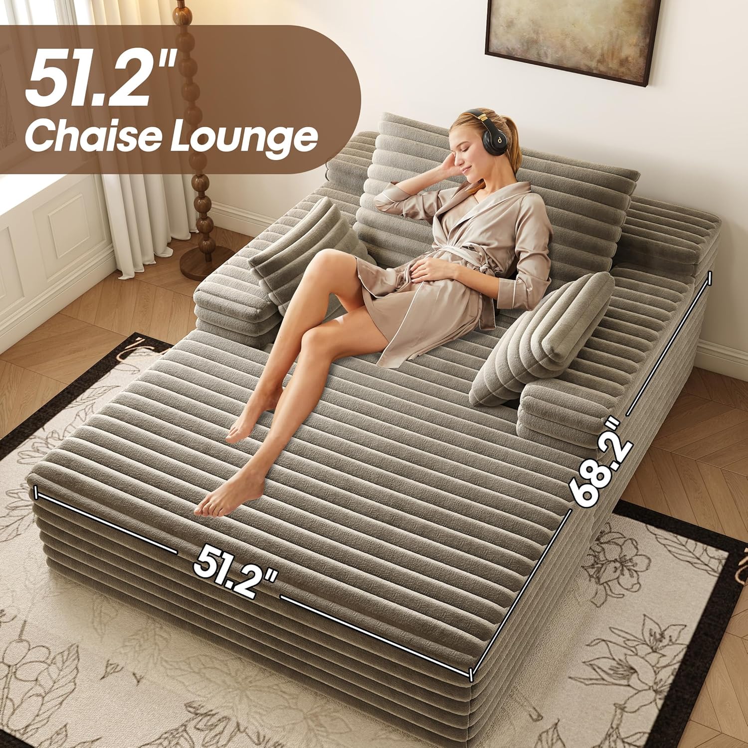 - Deep Seat Chaise Lounge: The oversized chaise lounge sofa couch with spacious sleeping area is enough to meet your and your family's needs.You can curling up, watching night movies, reading a book, or napping on the sofa, whether you are tall or like to stretch your body freely, you can find the most comfortable sitting or lying position on this big comfy chair in living room, bedroom, home theater room, it can be a versatile seating option that ensures an enjoyable and relaxing experience