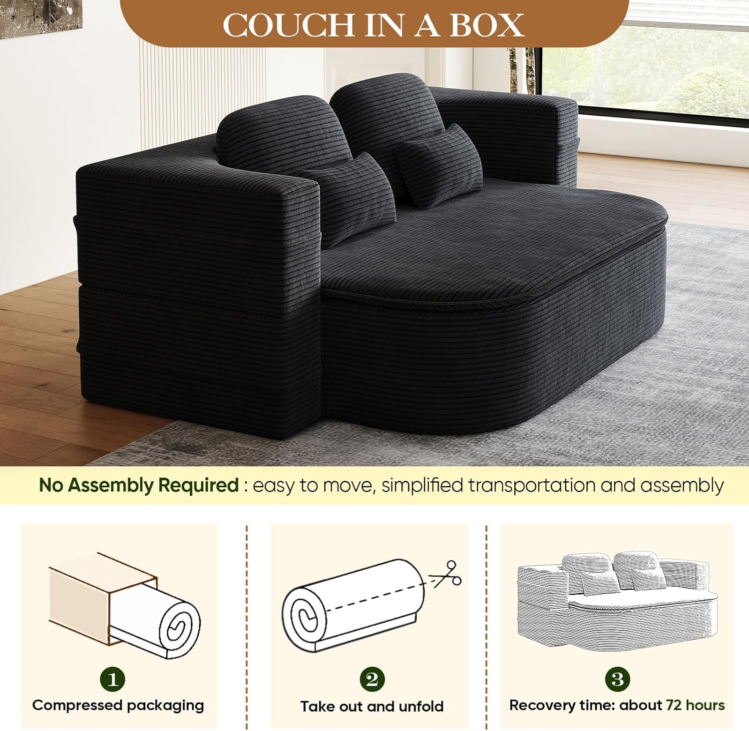 - Compression Sofa Bed: Our foldable couch ships in compact compression packaging, making it easy to pass through narrow hallways or doorways. Simply unbox, unfold, and let it expand—no assembly required! The high-resilience foam may take up to 72 hours to fully regain its original shape, so please be patient