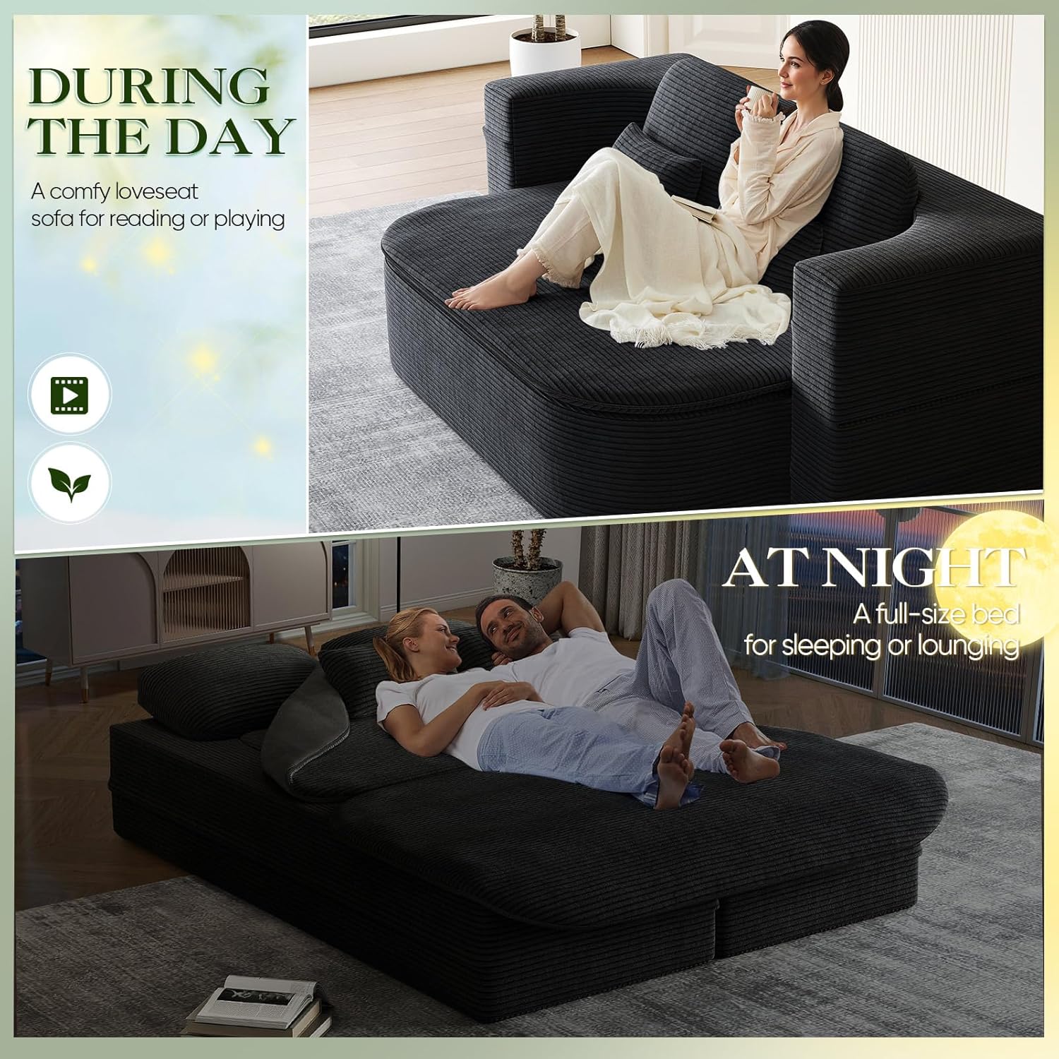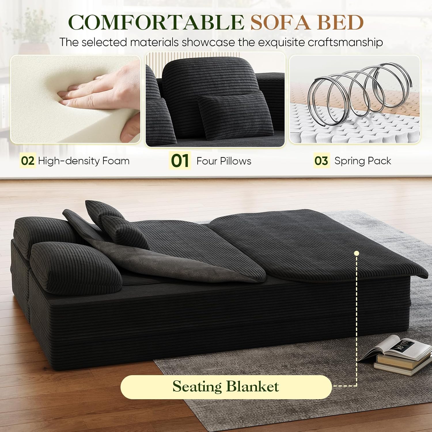 - Luxury Corduroy Upholstery: The convertible sleeper sofa elevates comfort with its premium corduroy fabric, offering both softness and warmth for your everyday use. Four full and fluffy pillows are included, perfectly sized for lower back support or cozy lounging and napping