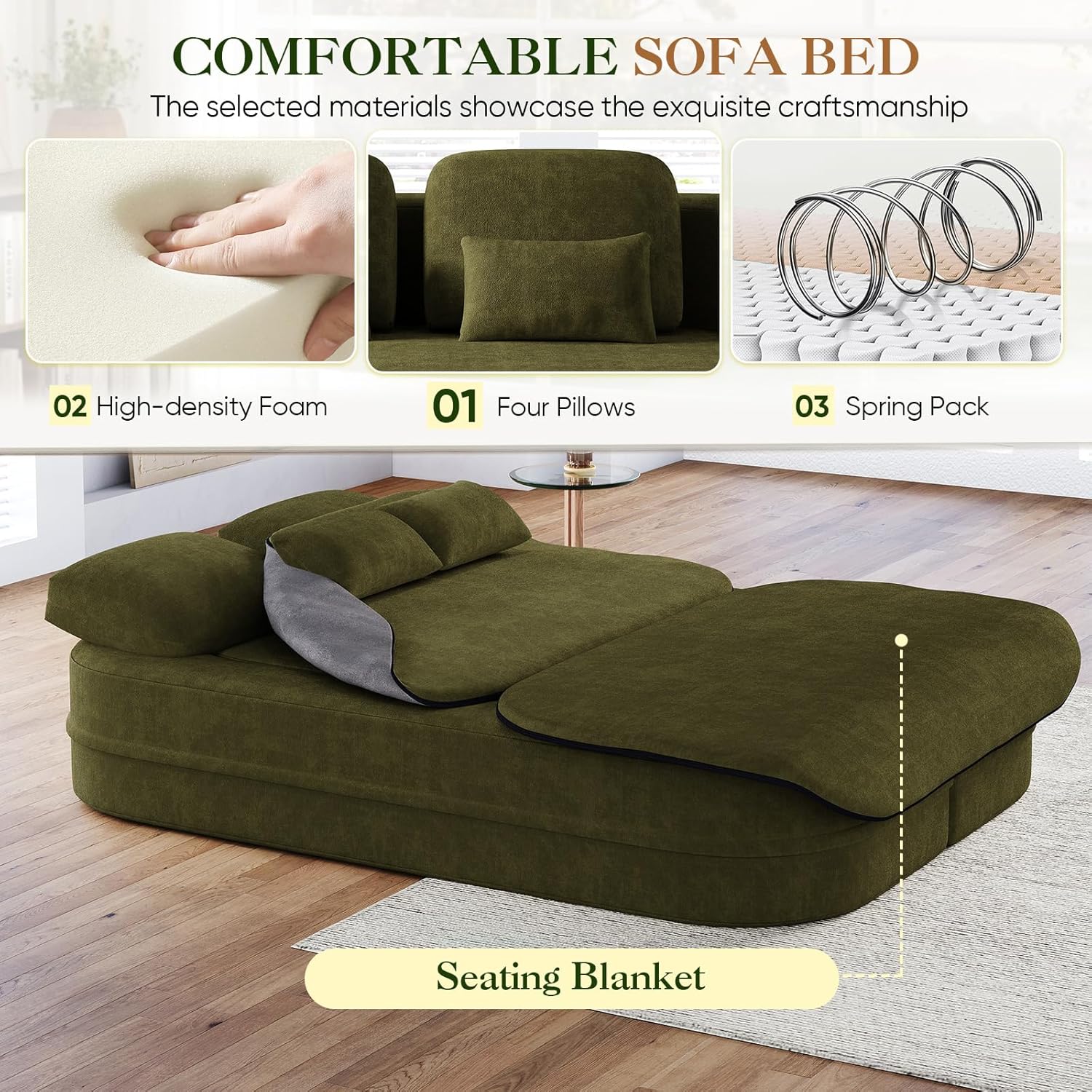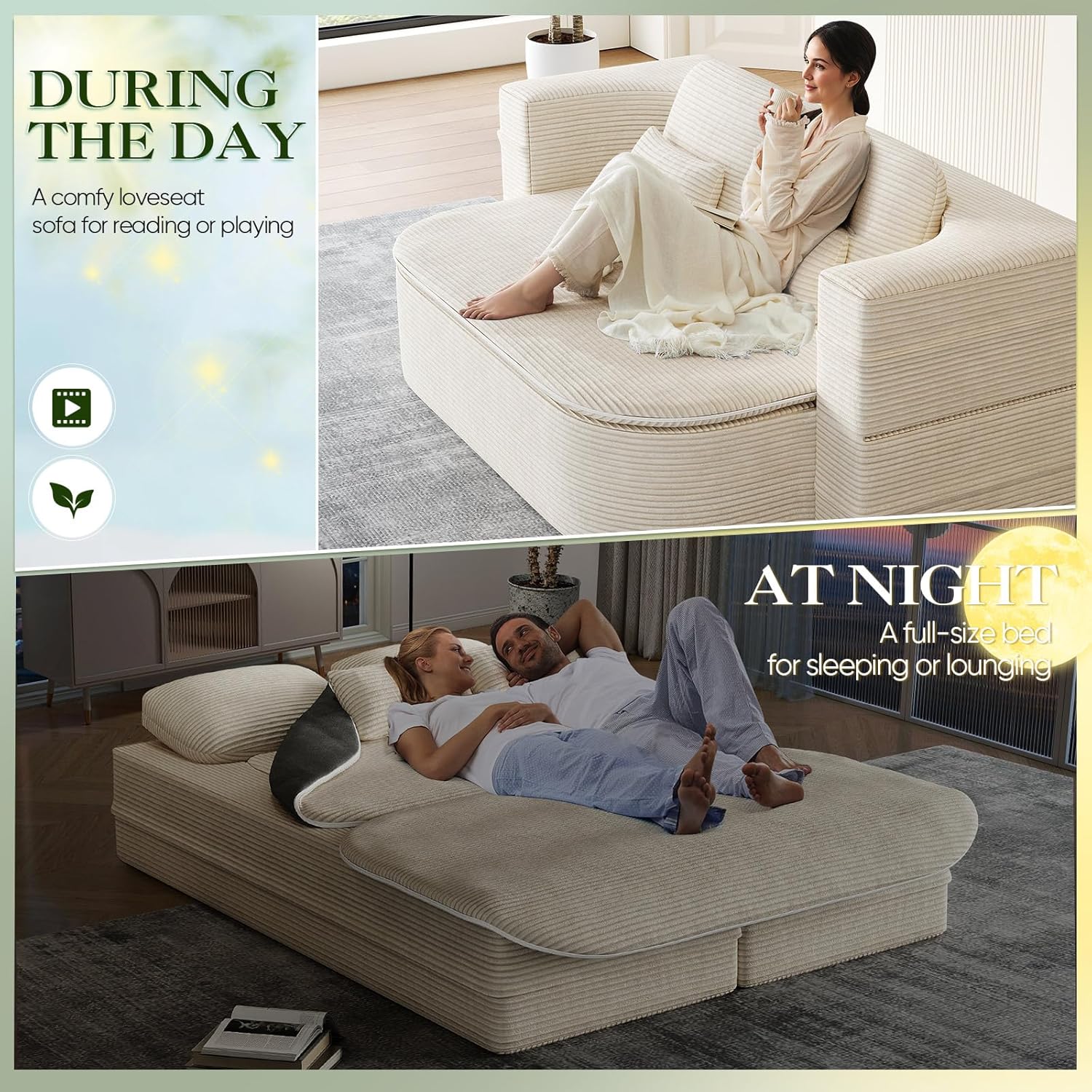 - Convertible 2-in-1 Functionality: Transform your living space in seconds! Unfolding the backrest to convert this foam couch into a full-size bed. Paired with the included cushion blanket, which is filled with silk wool, bringing you a comfortable and skin-friendly sleeping experience